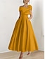 Sukienki koktajlowe w kształcie litery A sukienka z lat 50. gość weselny ukończenie szkoły długość herbaty bez rękawów bez ramiączek jesienne przyjęcie weselne satynowa z gładką kokardą jednolity