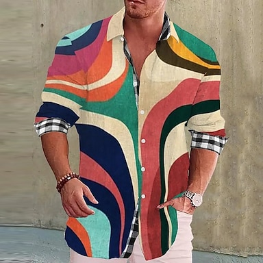 Męskie Kolorowy blok Wzór geometryczny Geometria Koszula Zapinana na guziki koszula Długi rękaw Moda Moda miejska Designerskie Na zewnątrz Codzienny Lato Wiosna Jesień Kołnierz stawiany Nadruk