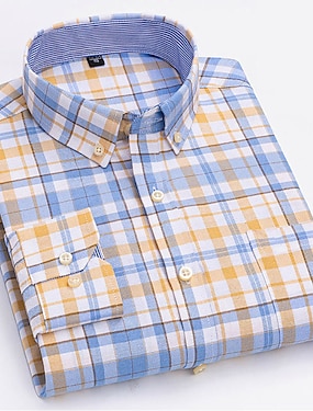 Męskie Koszule eleganckie Koszula zapinana na guziki Nieżelazna koszula Koszula Oxford Paski i Plaid Ślub Urlop Jasnożółty Dżinsowy niebieski Biały Żółty Długi rękaw Wieczorne Na każdy sezon Odzież