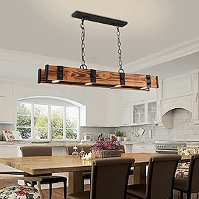 lampa wisząca led 100 cm liner design ciepła biel 4-jasne drewno przemysłowy styl vintage deaign wejście do domowego biura& błotna jadalnia