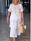 Damskie Zestawy spodenek Sztuczna bawełna len Rękaw 3/4 W serek Prążki Wielowarstwowy Urlop Codzienny Codzienny Na zewnątrz Urlop Zielony Khaki Szary Lato Regularny