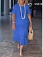 Damskie Sukienka maxi Sukienka A line Letnie sukienki Codzienny Codzienny Luźna Równina Krótki rękaw Półgolf Niebieski Biały Pomarańczowy Zielony Lato
