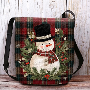 Damska torba typu crossbody z motywem bałwana – z nadrukiem bałwana i płatka śniegu, idealna na świąteczne zakupy, przyjęcia bożonarodzeniowe i zimowe wyjścia
