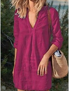 Damskie Sukienka maxi Sztuczna bawełna len Sukienka koszulowa Sukienka typu kaftan Codzienne sukienki Podstawowy Nowoczesny Codzienny Weekend Luźna Równina Długi rękaw Rozcięcie szyi Czarny Wino Khaki