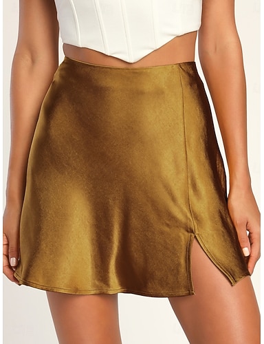 Damskie Spódnice satynowe Moda Codzienny Do kolan Wysoka talia Spódnice Równina Średnio elastyczny Codzienny Ulica Czarny Szampański Złoty Zielony Lato Satyna Poliester