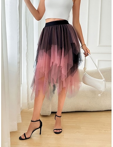 Damskie Spódnica wakacyjna Elegancja Moda Śłodkie Codzienny Midi Średni stan Spódnice Kolorowy blok Elastyczny pas Nieregularny brzeg Wielowarstwowy Średnio elastyczny Codzienny Urlop Fiołkowy Biały