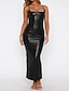 Damskie Sukienka midi Sukienka ołówkowa Skórzana sukienka Moda Nowoczesny Biuro Wyjściowe Regularny Równina Bez rękawów Bez ramiączek Czarny Kość słoniowa Lato Wiosna Jesień Zima