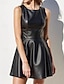 Damskie Sukienka mini Skórzana sukienka Moda Nowoczesny Biuro Codzienny Święto Regularny Równina Bez rękawów Wysoki Czarny Lato Wiosna Jesień