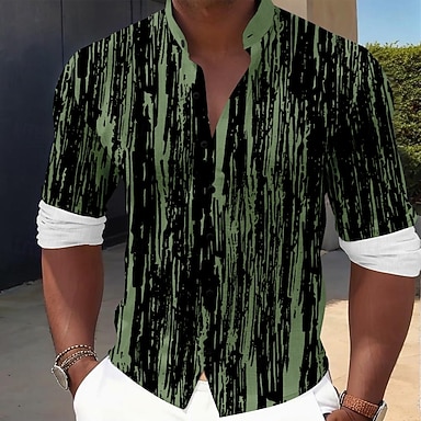 Męskie Tenké Koszule eleganckie Zapinana na guziki koszula Długi rękaw Codzienny Urlop Dom Codzienny Lato Wiosna i jesień kołnierz dziadka Stójka Druk 3D Czarny Niebieski Brązowy Zielony