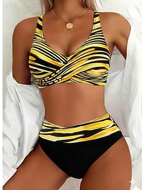 Damskie Stroje kąpielowe Bikini Bezczelny Kostium kąpielowy Urlop Moda Graficzny Prążki W serek Bez rękawów Kostiumy kąpielowe