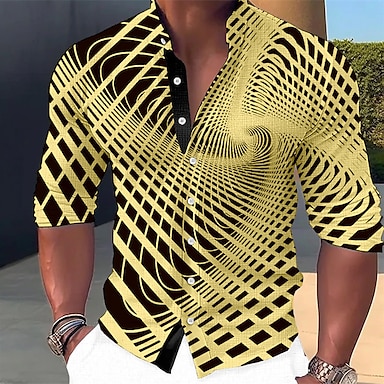 Męskie Wzór geometryczny Geometria Koszula Zapinana na guziki koszula Długi rękaw Moda Moda miejska Designerskie Codzienny Święto Wyjściowe Wiosna i lato Wieczorne Druk 3D Przycisk w dół Żółty