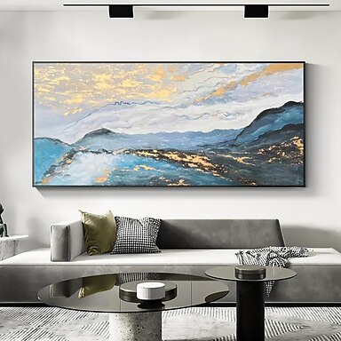 Hang-Malowane obraz olejny Ręcznie malowane Poziomy panoramiczny Abstrakcja Krajobraz Nowoczesny Naciągnięte płótka