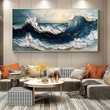 Ręcznie malowany obraz olejny na płótnie, dekoracja ścienna, abstrakcyjne, teksturowane fale, do wystroju domu, zwinięty, bez ramy, nierozciągnięty