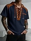 Męskie Podkoszulek Koszulki Krótki rękaw Kołnierz W serek Lato Na każdy sezon Kolorowy blok Zabytkowe Moda Codzienny Wiązanie Nadruk Codzienny Sport Wyjściowe Ciemnoszary Niebieski Ciemnobrązowy Top