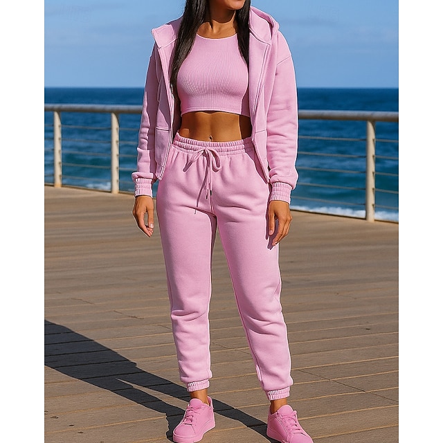 Damskie Dres 2-częściowy Bluza z kapturem Lounge Komplety dresowe Elastyczny pas Solidne kolory Zestawy odzież Jesień Czarny Różowy Na zewnątrz Podróże Sportowy Odprowadza wilgoć Długi rękaw Sport #10233796