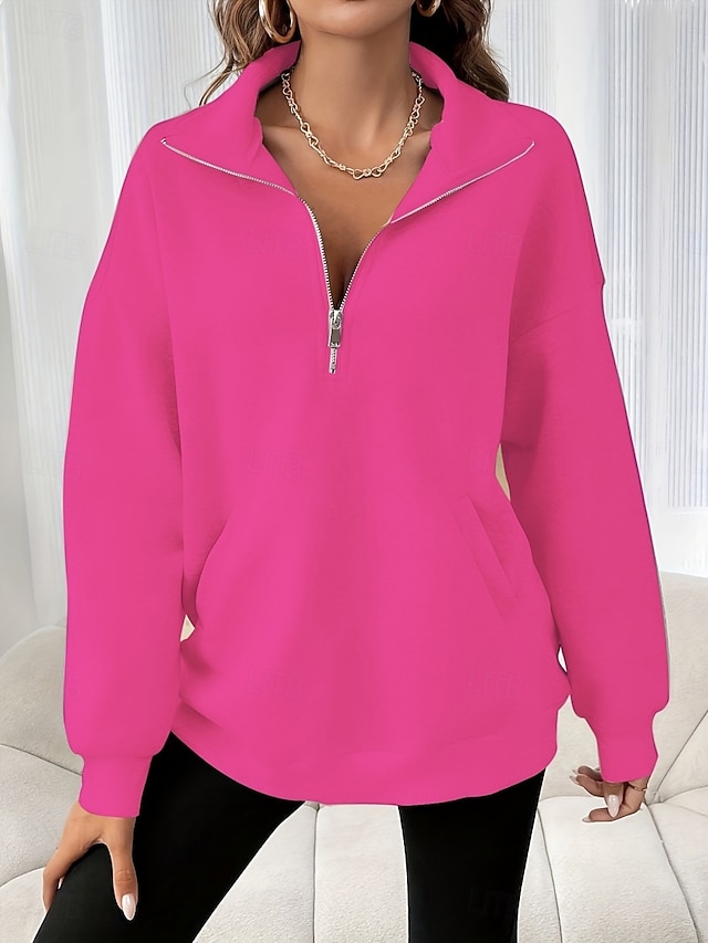 Damskie Bluza z kapturem Niejednolita całość Zamek Równina Codzienny Długi rękaw Golf Zwykłe topy Ulica Na co dzień Czarny Fuksja Ciemnoszary Beżowy Szary Jesień Zima #10313575