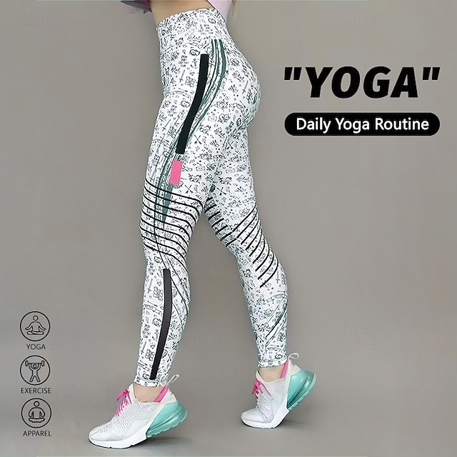 Damskie Spodnie do jogi Boczne kieszenie Podnoszenie pośladków Wyszczuplenie brzucha Wysoka talia Pilates Trening w siłowni Bieganie Rajstopy Legginsy capri Doły Nadruk Czarny + różowy + zielony