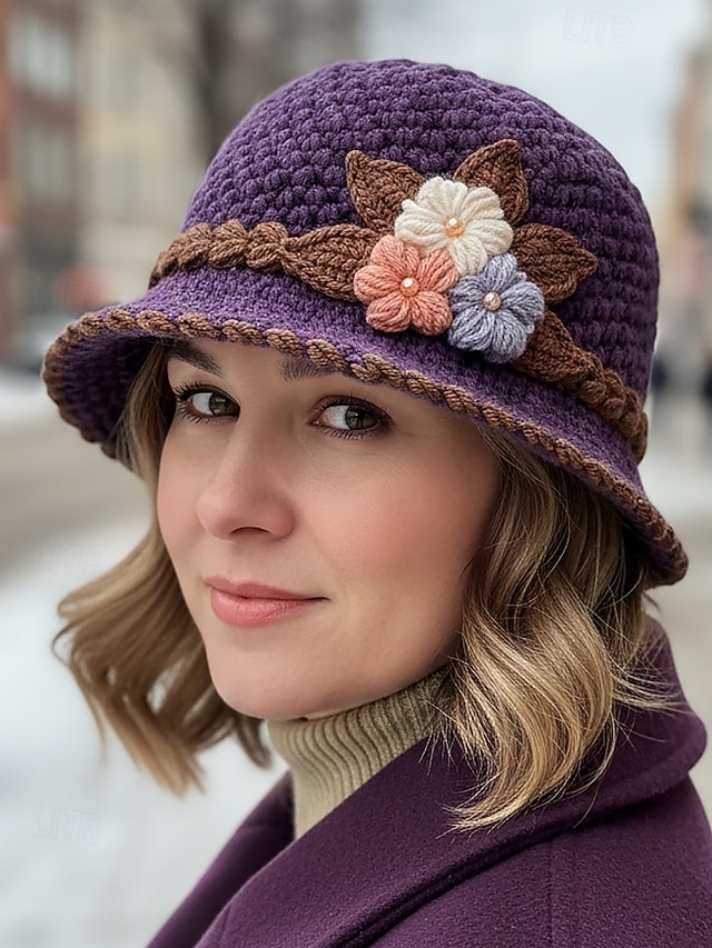 Pora roku:Wiosna,Jesień,Zima,Płeć:Damskie,Styl:Codzienny,Święta,Elegancja,Ciepłe,Materiał:Tkanina poliestrowa,Wzór:Jednokolorowe,Typ:Kapelusz fedora,Czapka bez daszka,Czapka dziergana,