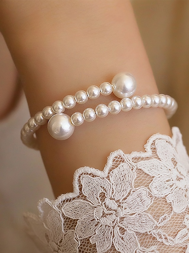 damska bransoletka z sztucznych pereł, elegancki dwukolorowy wzór, idealna na śluby, walentynki i na co dzień#11497291