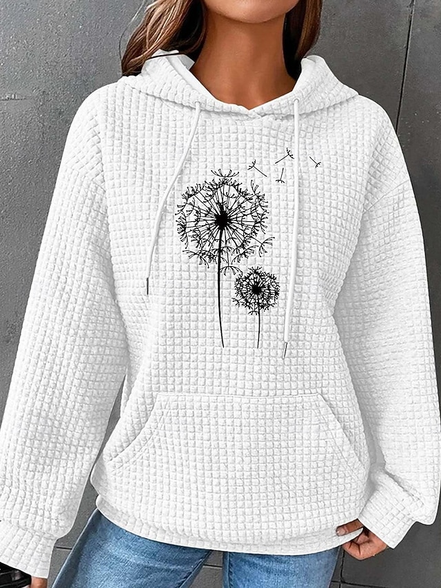 Damskie Z kapturem Kwiaty Graficzny Codzienny Długi rękaw Kaptur Zwykłe topy Ulica Na co dzień Codzienny Kieszeń Nadruk Biały Ciemnoniebieski Szary Jesień Zima #12176809