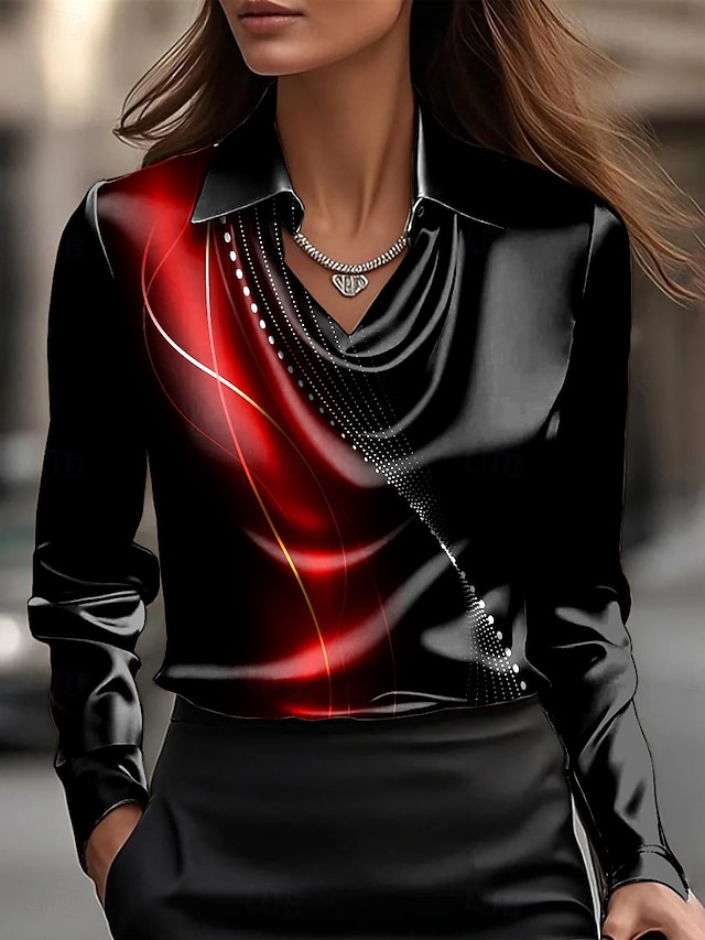 Materiał:Poliester,Płeć:Damskie,Rodzaj topu:Koszula,Wzór:W fałdki,Z marszczeniami,Graficzny,Geometryczny,Ombre,Okazja:Praca,Stroje na imprezy wieczorowe,Codzienny,Styl:Elegancki,Codzienny,Elegancja,Kategoria:Bluzka,Typ dopasowania:Regularny,Właściwości tkaniny:Jedwabisty,Dekolt:Lejący się dekolt,Długość rękawa:Długi rękaw,Elastyczność:Nieelastyczny,Pielęgnacja:Pranie w pralce,Długośc topu:Zwykłe topy,Pora roku:Zima,Jesień,Lato,