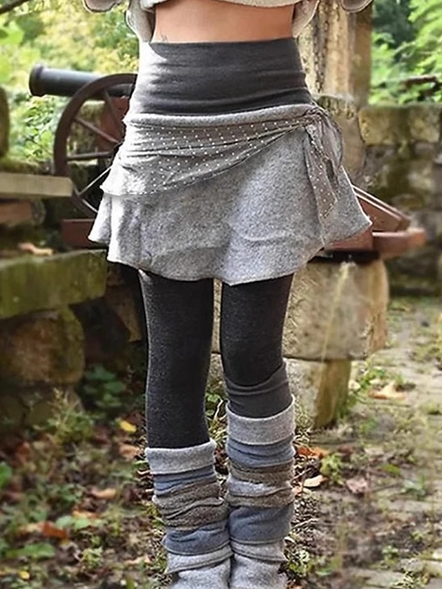 Damskie Getry Moda miejska Codzienny Pełna długość Średia talia Kolorowy blok Elastyczny pas Wielowarstwowy Wygodny Elastyczny Codzienny Na zewnątrz Urlop Szary Jesień Zima Luźna #12960814