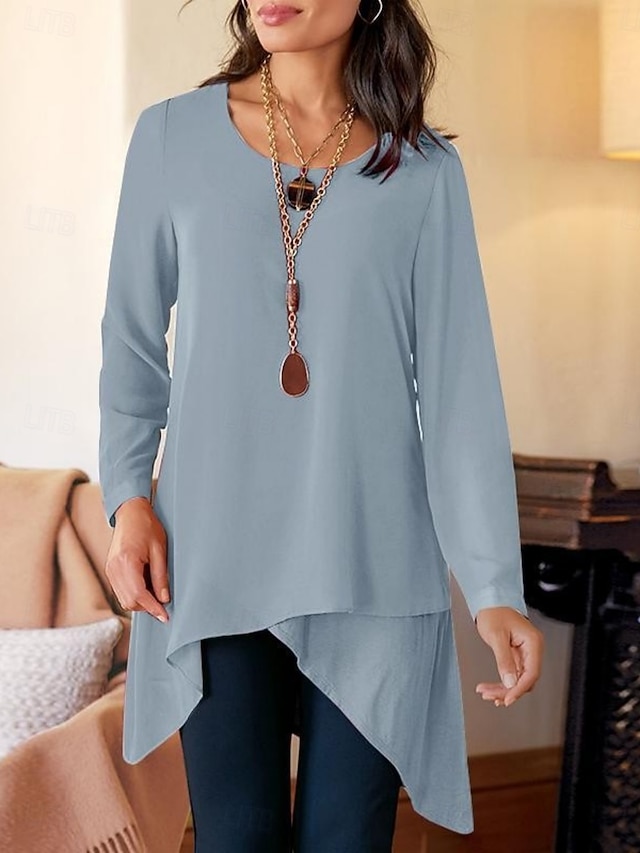 Damskie Bluzka Falbana Jednokolorowe Elegancki Codzienny Długi rękaw Półgolf Długie topy Codzienny Niebieski Czarny Khaki Wiosna Jesień #13227967