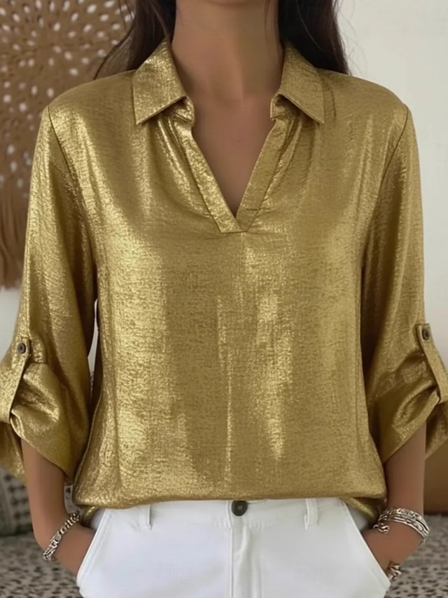 Damskie Koszula Codzienna koszula Równina Zabytkowe Elegancki Klasyczny Długi rękaw W serek Zwykłe topy Codzienny Święto Wyjściowe Czarny Biały Czerwony Złoty Wiosna Jesień #13333665