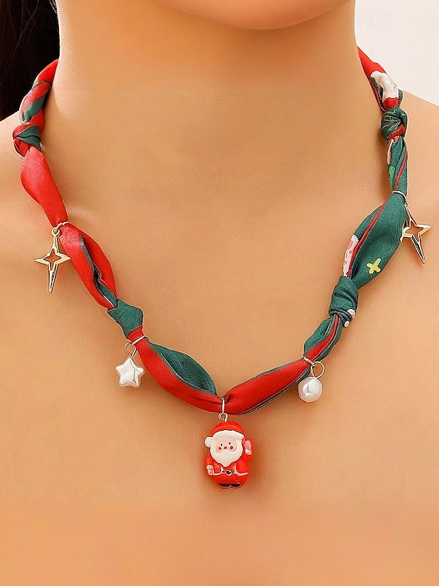 Naszyjnik świąteczny dla kobiet, wykonany ze stopu metali, tkaniny i akrylu, z motywem renifera, Świętego Mikołaja i choinki, idealny na przyjęcia świąteczne #13407722