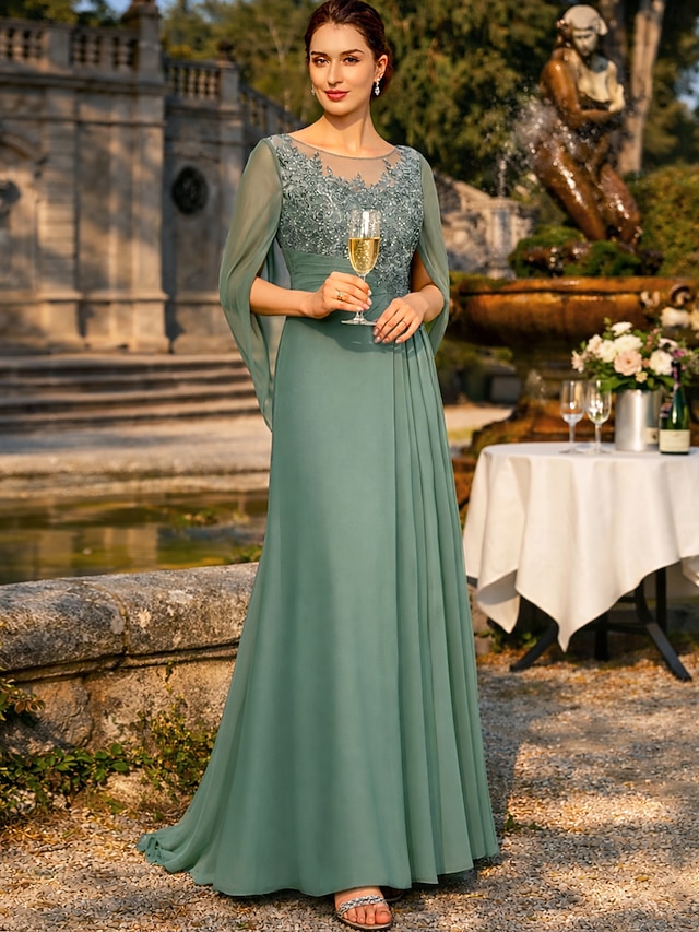 Ołówkowa Kolumnowa Sukienki Sięgająca podłoża Sukienka dla gościa weselnego Suknia Suknia wieczorowa Sukienka dla matki panny młodej Rękaw 1/2 Zaokrąglony Elegancja Formalny Szyfon z Koronka Z #13725294