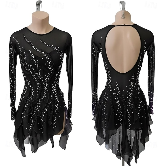 Kurtka łyżwiarska z polaru Sukienka łyżwiarska Damskie Bruslení Sukienka Czarny Niejednolita całość Otwórz Wróć Elastyczny Szkolenie Zawody Odzież łyżwiarska Klasyczny Kryształ / Kryształ górski #13829615