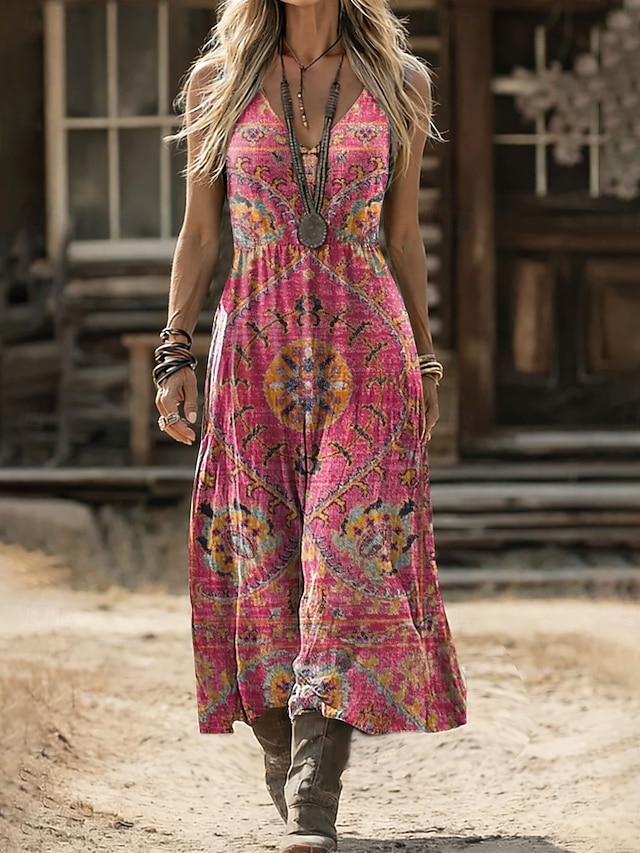 Rodzaj sukienki:Mieszanka lnu,Sukienka Boho,Sukienka letnia,Sukienka koszulowa,Materiał:Poliester,Płeć:Damskie,Okazja:Święto,Plaża,Styl:Bohema,Etniczne,Elegancja,Kategoria:Sukienka,Typ dopasowania:Regularny,Typ długości sukienki:Sukienka midi,Dekolt:W serek,Długość rękawa:Bez rękawów,Elastyczność:Nieelastyczny,Pielęgnacja:Pranie ręczne,Pranie w pralce,Wzór:Graficzny,Geometryczny,Pora roku:Lato,Wiosna,