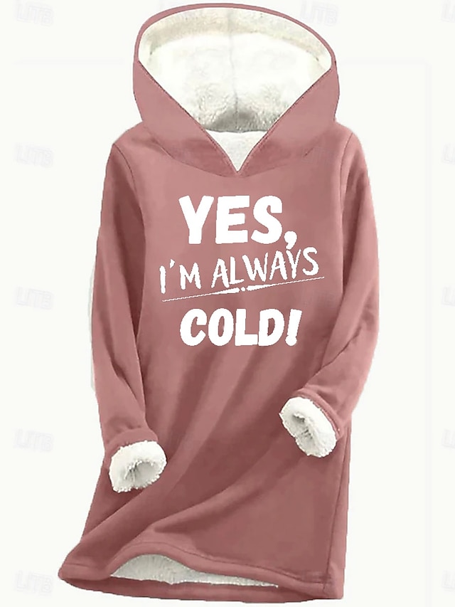 Damskie Bluza z kapturem i bluzą Nadruk Graficzny Litera Codzienny Komfort Długi rękaw Kaptur Długie topy Codzienny Ulica Na co dzień Niebieski Rumiany róż Szary Jesień Zima #14148429