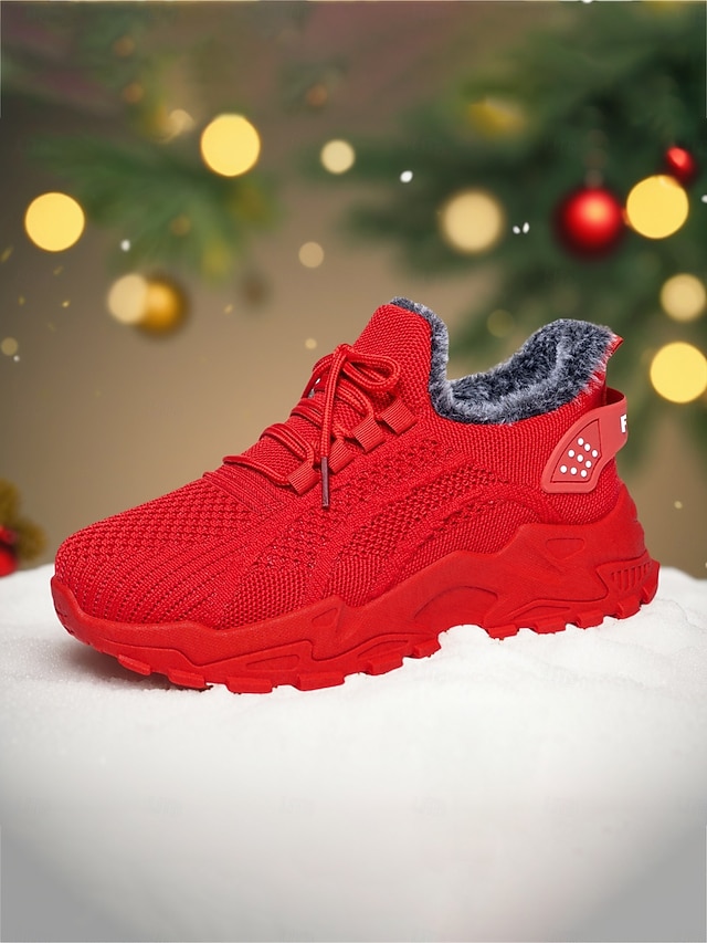 Damskie czerwone trampki z podszewką z polaru - ciepłe, dzianinowe buty codzienne z antypoślizgową podeszwą, wygodne obuwie świąteczne na zimowe spacery i podróże #14185360