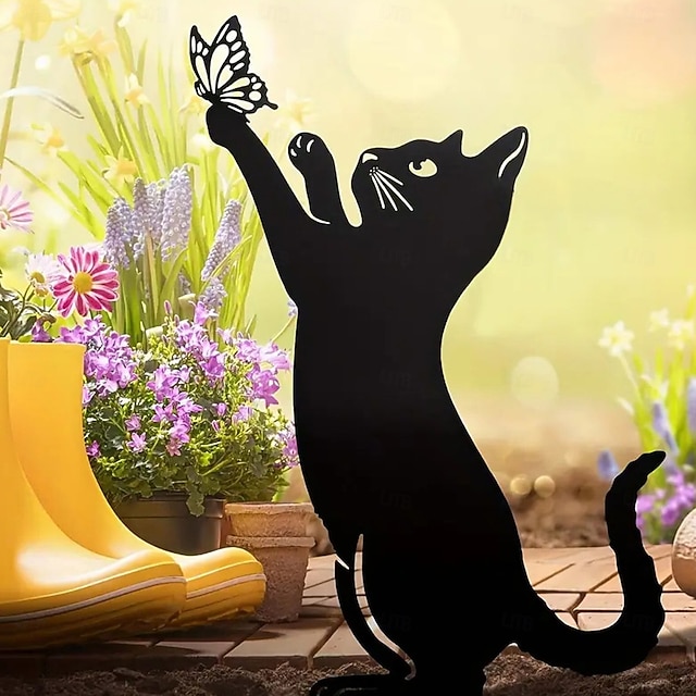 sylwetka kota metalowa statua żelazne czarne koty palik zwierzę podłoga wtyczka dekoracja rzemiosło podwórko ogród sztuka znaki dla miłośników kotów prezenty na trawnik gospodarstwo kwietnik#14375152