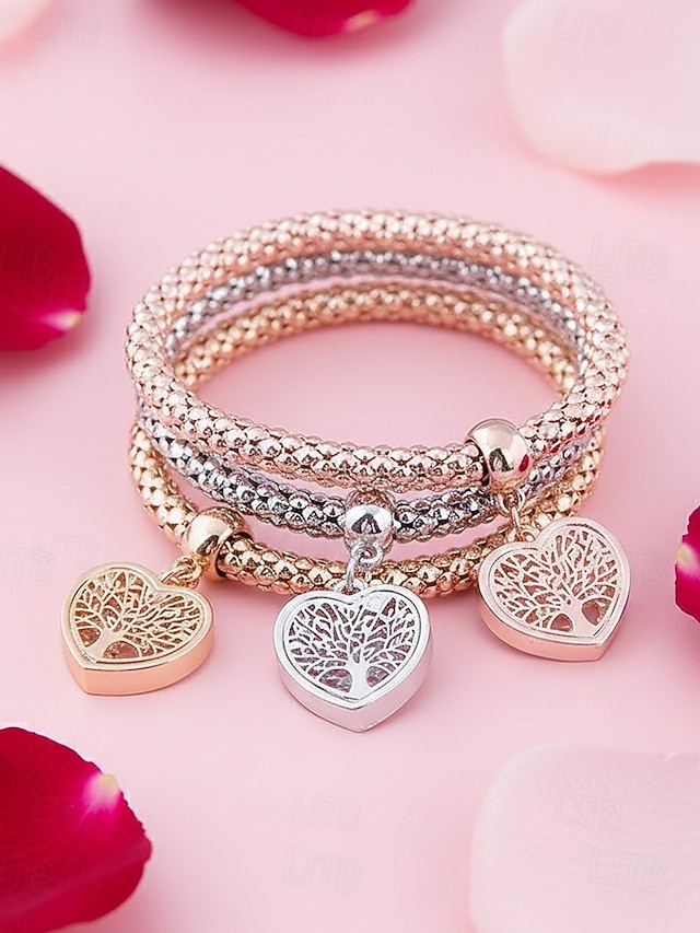 Zestaw bransoletek z zawieszkami w kształcie serca i drzewa życia - wielokolorowe plecione bransoletki damskie do układania w stosy w stylu boho, idealne do codziennych stylizacji lub jako prezent#14388975