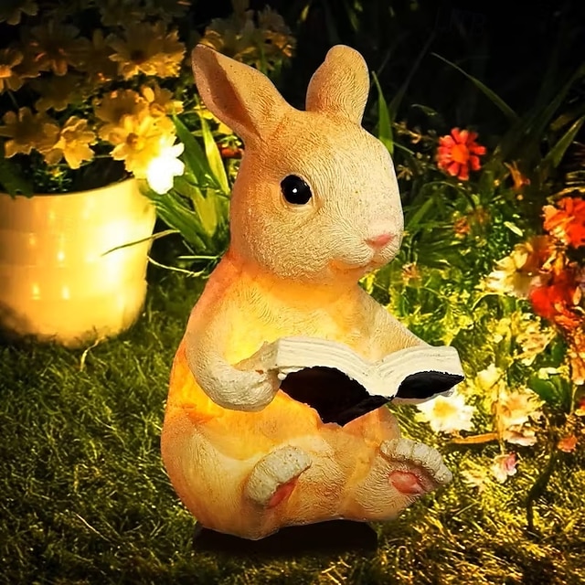 zasilana energią słoneczną żywiczna lampa ogrodowa w kształcie królika, kreatywne światło dla zwierząt, wodoodporna, zewnętrzna, willa, trawnik, ścieżka, dekoracja na przyjęcie wielkanocne#14422563