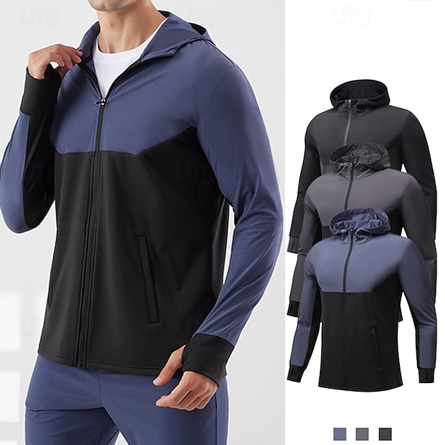 Płeć:Męskie,Podkategoria:Kurtka sportowa,Typ:Top,Działanie:Joga,Piesze wycieczki,Bieganie,Trening,Siłownia,Okazja:Ćwiczyć,Siłownie,Athleisure,Sport,Pora roku:Jesień / Zima,Typ dopasowania:Regularny,Funkcja:Lekki,Ochrona przed słońcem,Materiał:Poliester,Długość rękawa:Długi rękaw,Wzór:Kaptur,Kolorowy blok,Dekolt:Kaptur,Pielęgnacja:Czyszczenie na mokro i na sucho,Zmywalny,Biust (cm):S:100;M:104;L:108;XL:112;XXL:116,Długość (cm):S:68;M:70;L:72;XL:74;XXL:76,
