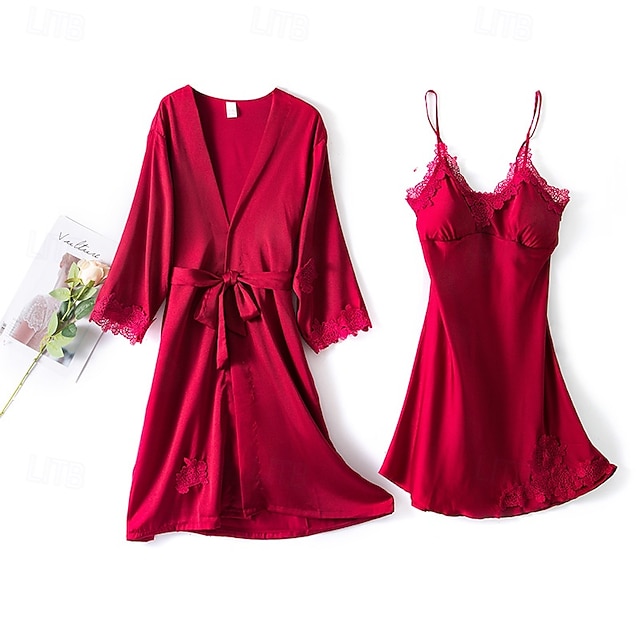 Damskie Odzież domowa Koszula nocna Moda Seksowny Codzienny Czyste kolory Niejednolita całość Sukienka Dom Urlop Długi rękaw W serek Czarny Rumiany róż Wino Złoty Ciemnoniebieski Lato Wiosna Jesień #16349796
