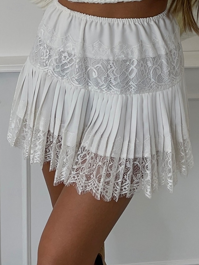 Damskie Spódnica koronkowa Zabytkowe Moda Codzienny Mini Wysoka talia Spódnice Z marszczeniami Koronka Pofałdowany Średnio elastyczny Codzienny Kij Czarny Biały Lato #17017766