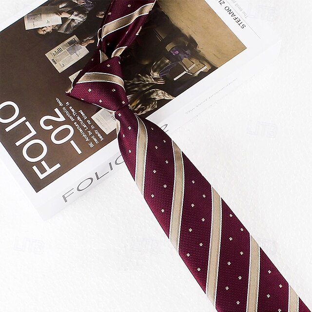 [Materiał i tekstura]: Ten męski krawat jest starannie wykonany z wysokiej jakości jedwabiu, co zapewnia gładkie, luksusowe wrażenie, które jest zarówno wygodne, jak i stylowe. Wybór jedwabiu gwarantuje solidną strukturę, zachowując przy tym elegancką, miękką teksturę. [Wzór i styl]: Prezentując nowoczesny, współczesny styl, ten krawat ukazuje pociągający wzór, który ucieleśnia wyrafinowanie. Bogaty burgundowy kolor bazowy jest podkreślony stylowymi, ukośnymi kremowymi paskami oraz subtelnie tkanymi małymi kwadratowymi wzorami, dodającymi głębi i detali do ogólnego projektu. [Cechy charakterystyczne projektu]: Projekt krawata emanuje seksownym i wyrafinowanym urokiem, idealnym do wyrażania swojego stylu. Jego złożone tkanie i precyzyjne detale odzwierciedlają wyjątkowe rzemiosło, zapewniając, że wyróżnia się w każdej formalnej scenerii. [Okazje]: Idealny na wesela, przyjęcia i na co dzień, ten krawat to wszechstronny dodatek, który wzbogaca każdy formalny strój. Niezależnie od tego, czy uczestniczysz w weselu, czy zajmujesz się codziennymi obowiązkami biznesowymi, dodaje odrobinę elegancji i wyrafinowania do każdego wyglądu. [Zakres rozmiarów]: Odpowiedni dla różnych rozmiarów szyi, ten krawat oferuje standardową długość i szerokość, które odpowiadają większości preferencji, zapewniając idealne dopasowanie i zadbany wygląd na różne okazje.