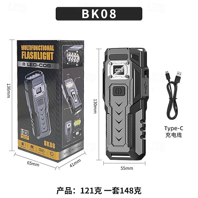 Latarka COB LED o dużej jasności z akumulatorem 1200 mAh, magnetycznym powerbankiem, cyfrowym wyświetlaczem poziomu naładowania baterii, oświetleniem wielotrybowym z klipsem, konstrukcją ABS do #17423870