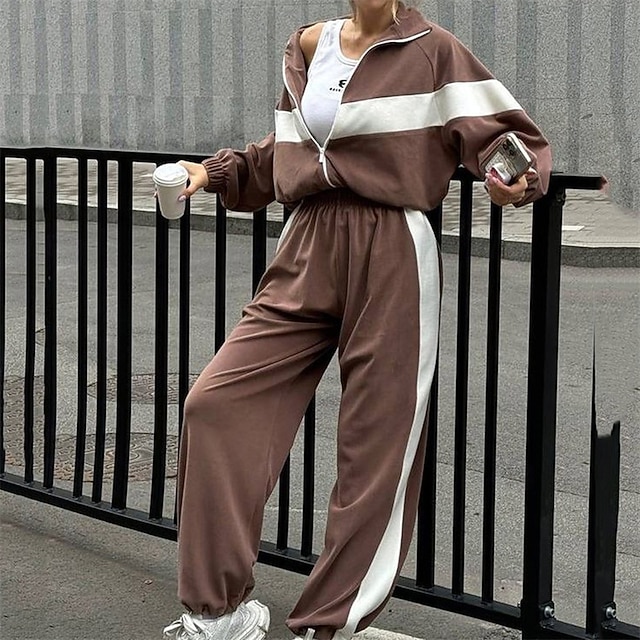 Damskie Dres Bluza Komplet sportowy Kieszeń Kolorowy blok Zestawy odzież Jesień Zima Biały Burgundowy Siłownia Trening Sportowy Keep Warm Odporność na wiatr Miękka Długi rękaw Sport Odzież sportowa #17861176