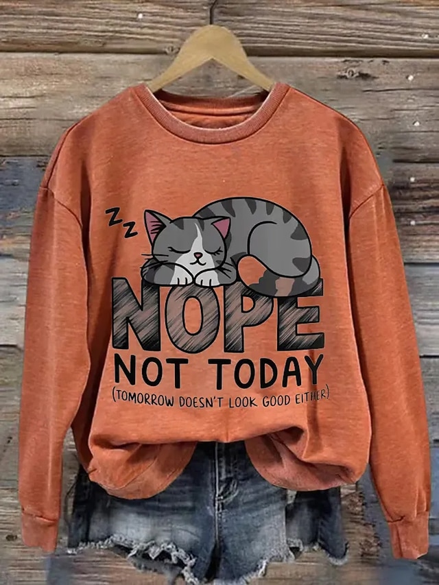 Koszulka damska z długim rękawem graficzna zwierząt kot vintage moda stylowa długi rękaw klasyczny okrągły dekolt zwykłe góry na co dzień weekendowy druk szary wiosna jesień przedseson