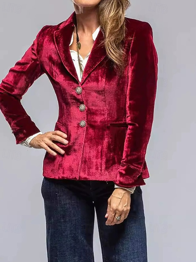Damskie Marynarka Aksamitne marynarki Wygodny Kieszeń Guziki Elegancja Moda Na zewnątrz Równina Wyjściowe Codzienne Weekend Guziki jednorzędowe Regularny Klapa Regularny Długi rękaw Odzież wierzchnia #18304780