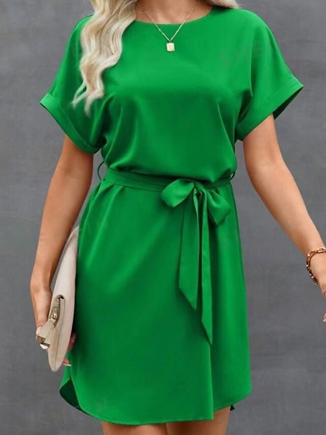 Damskie Sukienka mini Satynowa sukienka Moda Nowoczesny Na zewnątrz Urlop Święto Regularny Równina Krótki rękaw Półgolf Niebieski Wino Ciemnozielony Zielony Lato Wiosna Jesień #19208750