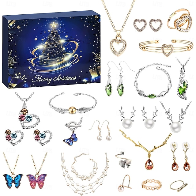 Kalendarz adwentowy z biżuterią 2025, kalendarz świąteczny 2025 dla kobiet z kolczykami, naszyjnikiem, pierścionkami i bransoletką, srebro i złoto, 25-dniowy kalendarz adwentowy z biżuterią dla kobiet#19532967