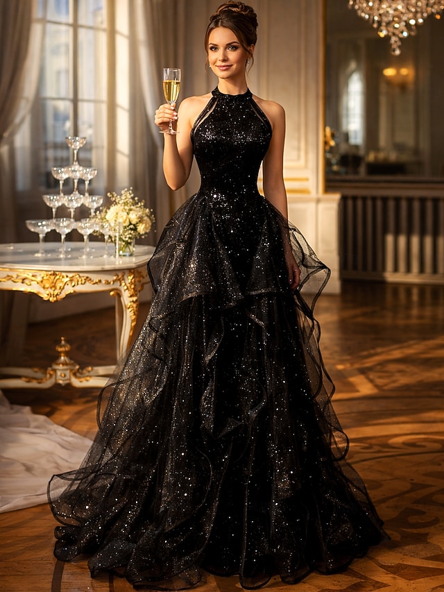 Krój A Tren sweep Suknie balowe Zabytkowe Błyszczące Wróżka Bez rękawów Kantarka Gość weselny Wesele Z cekinami z Dodatki kryształowe Cekin Falbany #9422854