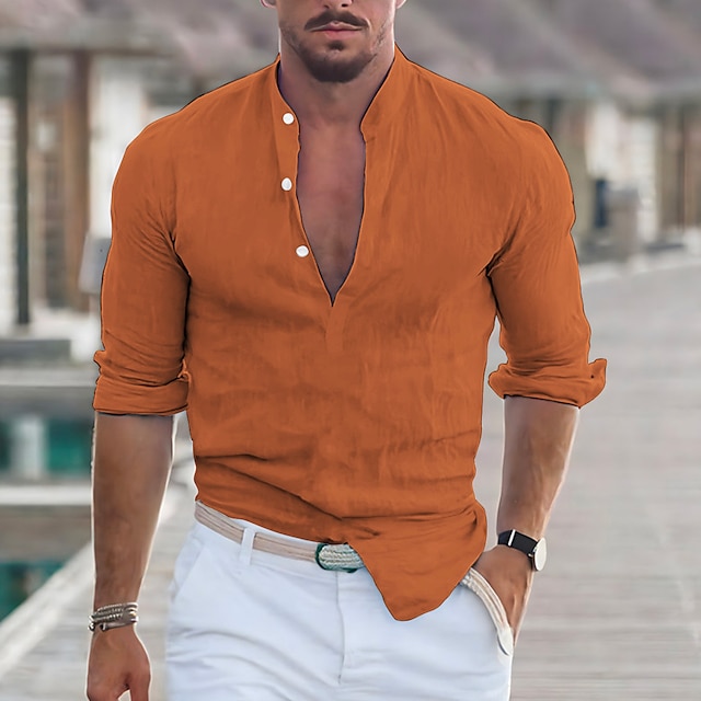 Męskie Koszula lniana Koszula Popover Codzienna koszula Koszula z kołnierzykiem Równina Urlop Przeklęty Czarny Biały Rumiany róż Granatowy Długi rękaw Kołnierz Wiosna i lato Odzież #9509908