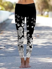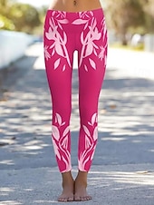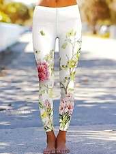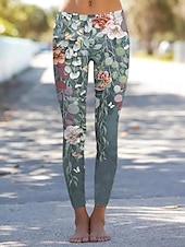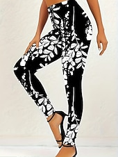 Damskie Getry Urlop Zabytkowe Moda Do kostek Wysoka talia Kwiaty Graficzny Kształt listka Drukowanie Keep Warm Miękka Oddychający Elastyczny Urlop Ulica Biały Zielony Wiosna Jesień Zima Opinający / a #12655594